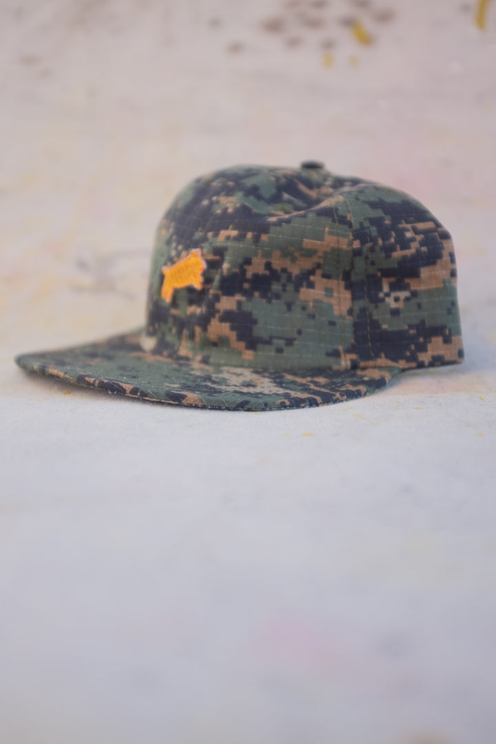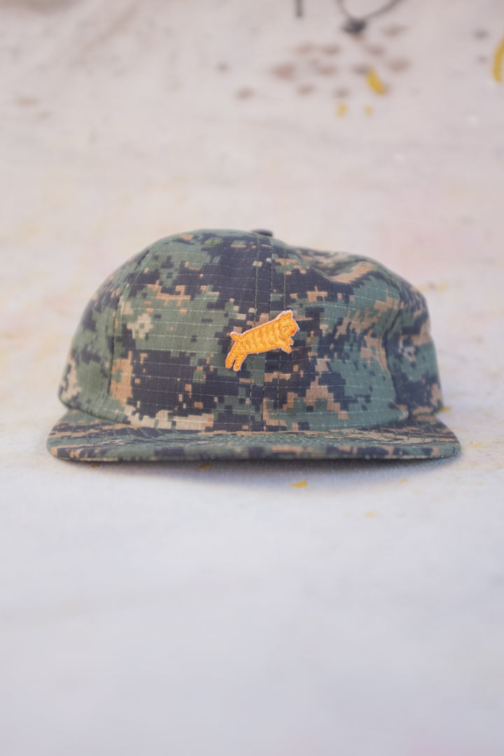 LA-made Chubby Cat Ball Cap, featuring a bold digi camo design and sturdy nylon ripstop construction built to last. The embroidered Chubby Bobcat patch adds character and charm, while the hard bill provides classic structure and sun protection. Adjustable strap ensures a perfect fit for most, making it the versatile accessory you'll reach for again and again. Proudly crafted in Los Angeles, CA—by Team Dream
