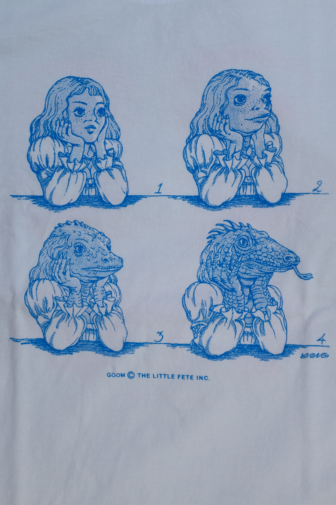 From Koreatown's finest, Goom comes a tee that captures the surreal transformation of humanity into lizard form. This heavyweight 6.5 oz. cotton short sleeve t-shirt features striking screen-printed artwork that sparks conversation and imagination. Crafted entirely in Los Angeles, it combines artistic vision with quality construction—a wearable statement piece that celebrates bold, unconventional design. Perfect for those who appreciate thought-provoking fashion that stands apart from the ordinary.