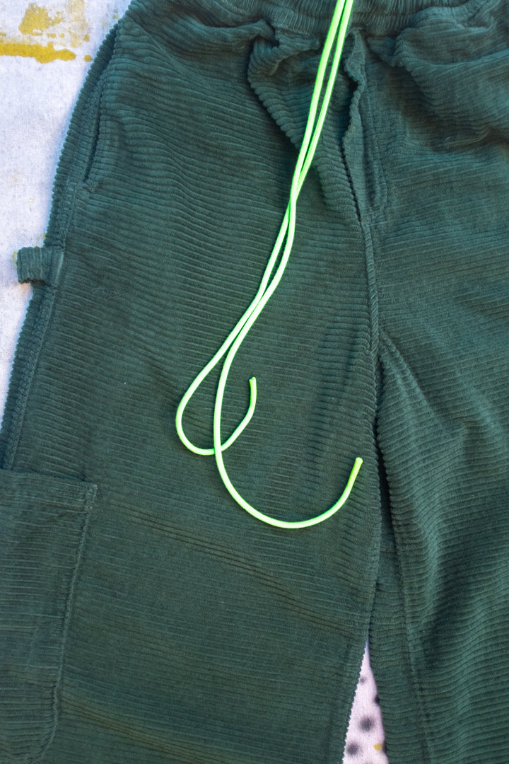 Elevate your wardrobe with Meals Clothing's Chef Pants, crafted from sumptuous wide wale corduroy in seaweed flavor and designed and made right here in Los Angeles. These aren't your standard chef wear—they feature two generously sized knee pockets for easy access to essentials, a dedicated hook for your BBQ tongs, and a thoughtfully loose yet refined silhouette that moves with you. The elastic waist with drawstring ensures a comfortable, adaptable fit whether you're working a rock face, a dance floor or firing up the grill. Support local craftsmanship while investing in pants that blend functionality with understated style.