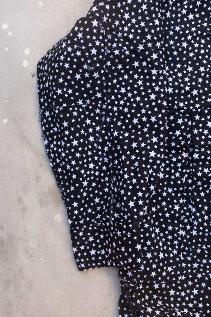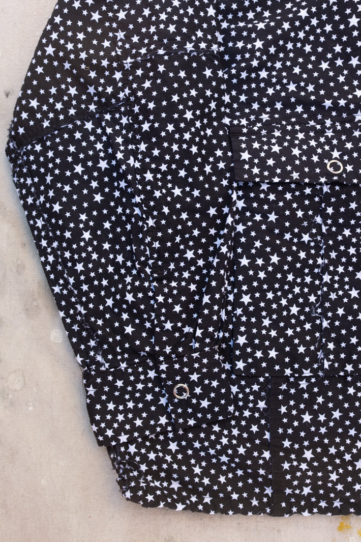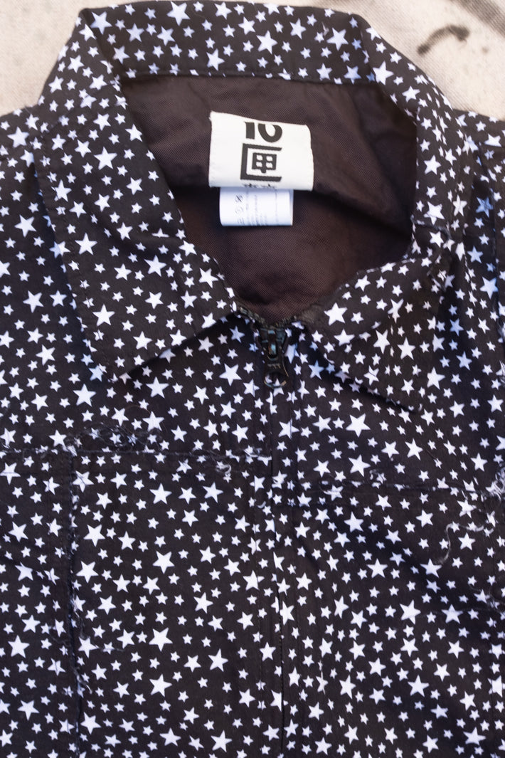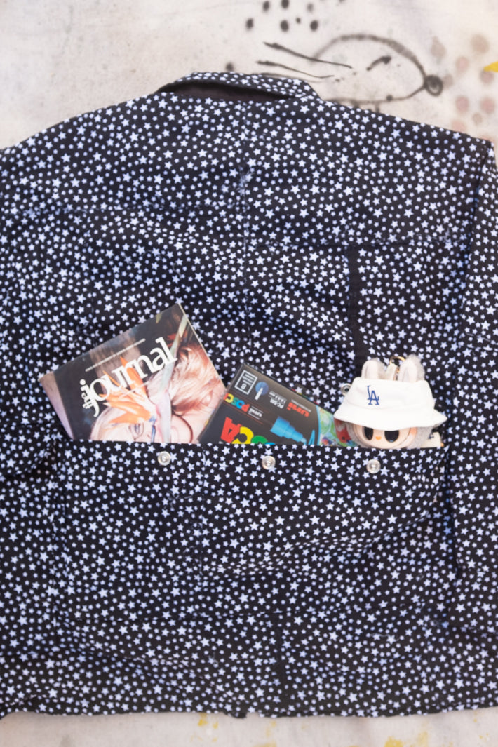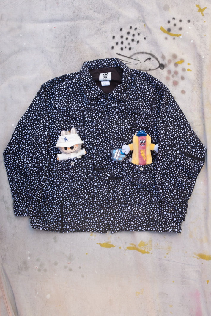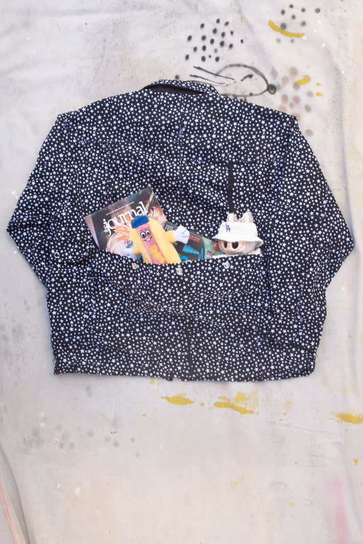 Step into style with the iconic Drug Dealer Jacket from Tenbox, crafted from authentic Star bandanas. Each shirt is one-of-a-kind, featuring a unique pattern and four functional pockets—(instead of 7) limited by the fabric’s original design. Made in Japan, this playful piece blends streetwear edge with artisanal charm, perfect for those who love a bold, standout look.